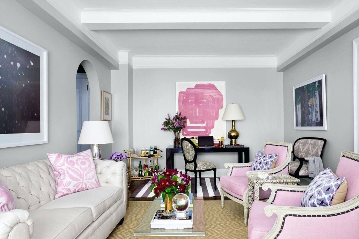 Фото: Серо-розовый интерьер гостиной