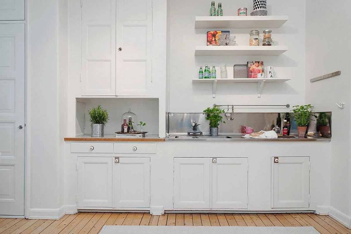 9. Без верхних шкафов кухни и полка со стаканами висящими вниз