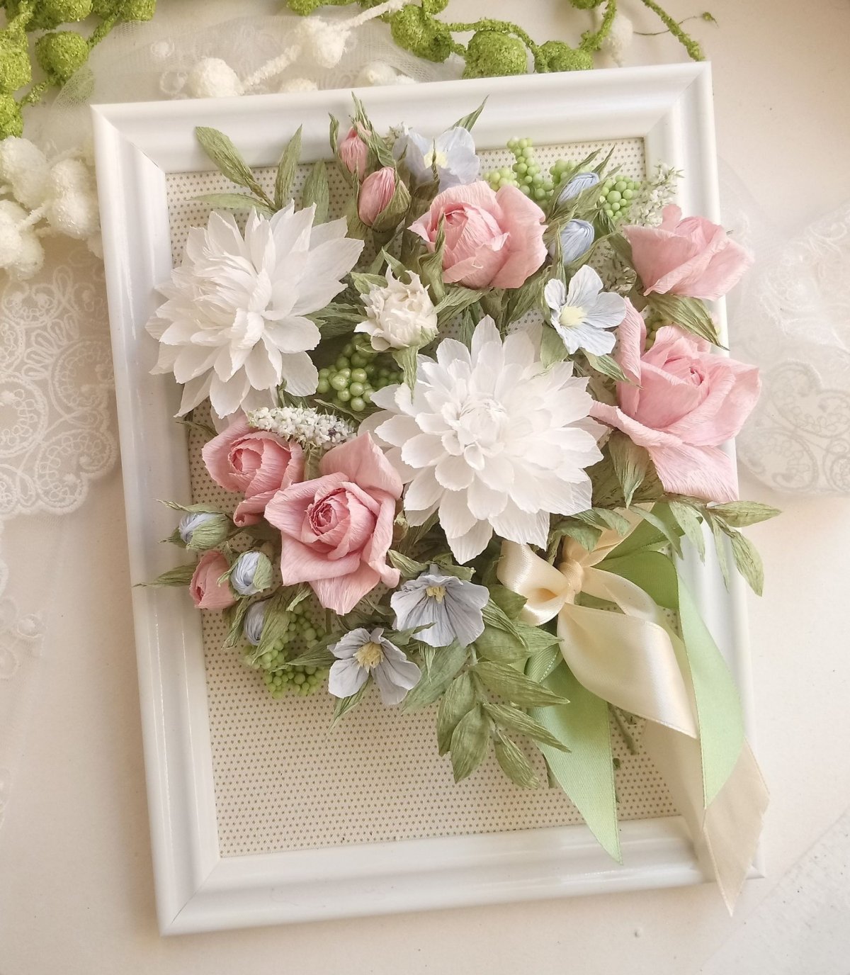 Фото: Композиции из бумажных цветов на стену