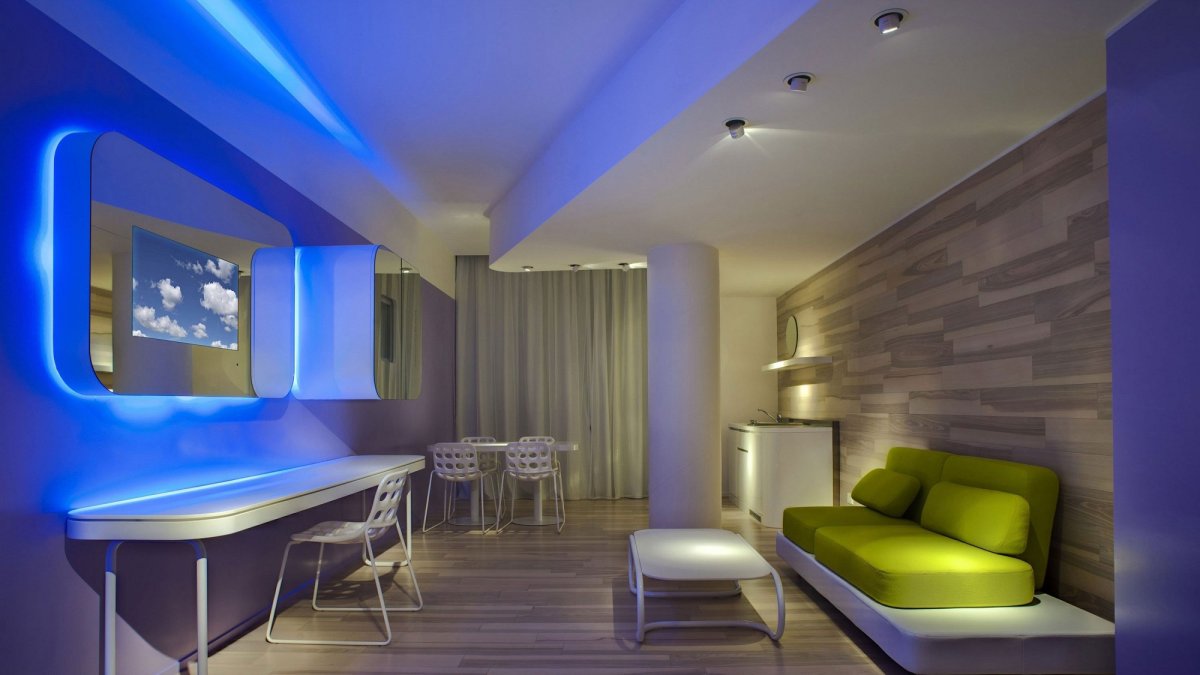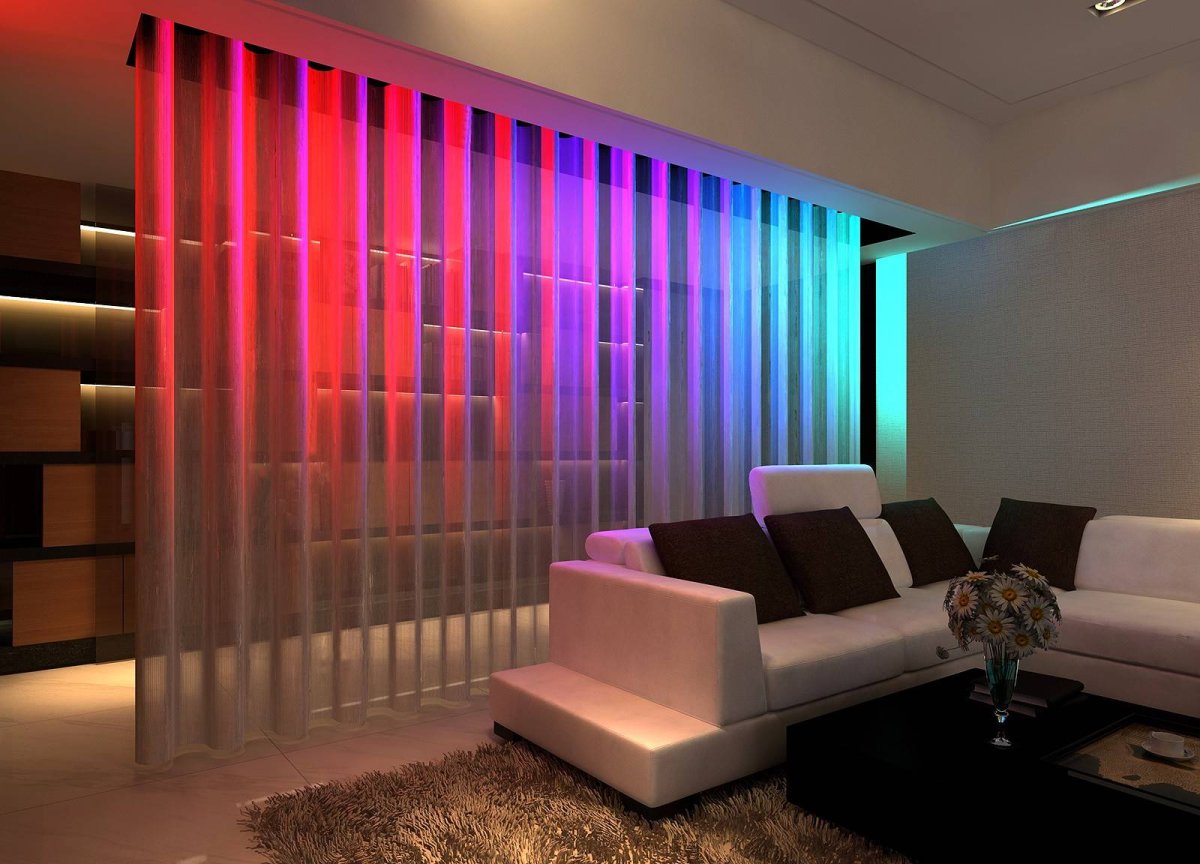 19. Гостиная с неоновой подсветкой