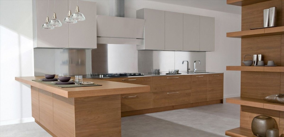 21. Современный кухонный гарнитур под дерево