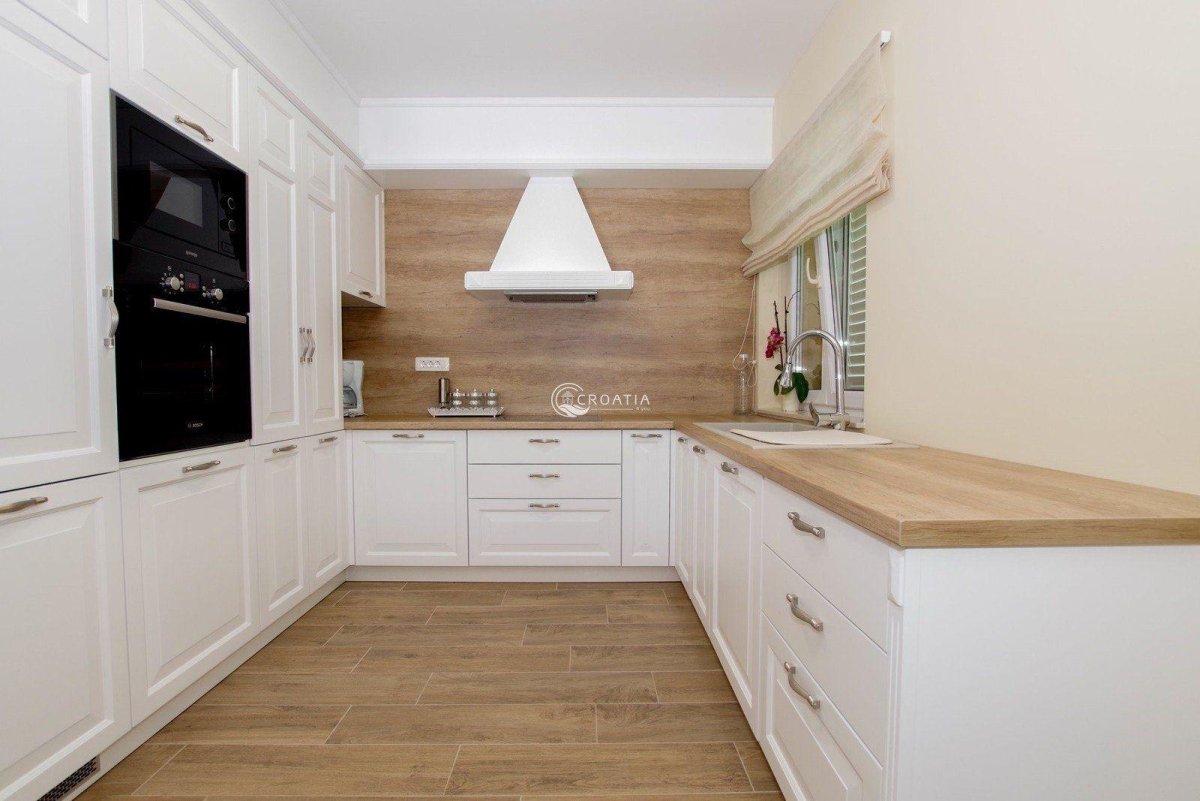 26. Белая кухня с деревянной столешницей