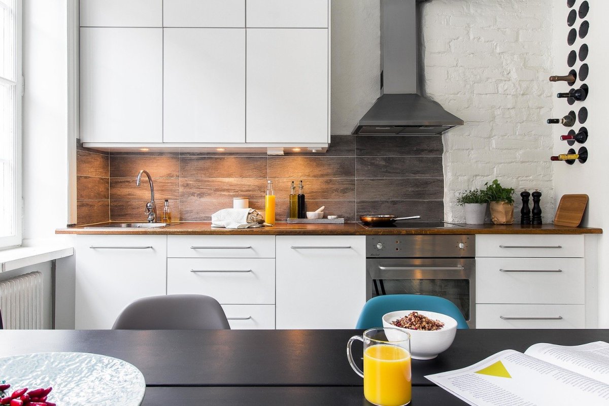 4. Сканди кухня с деревянной столешницей