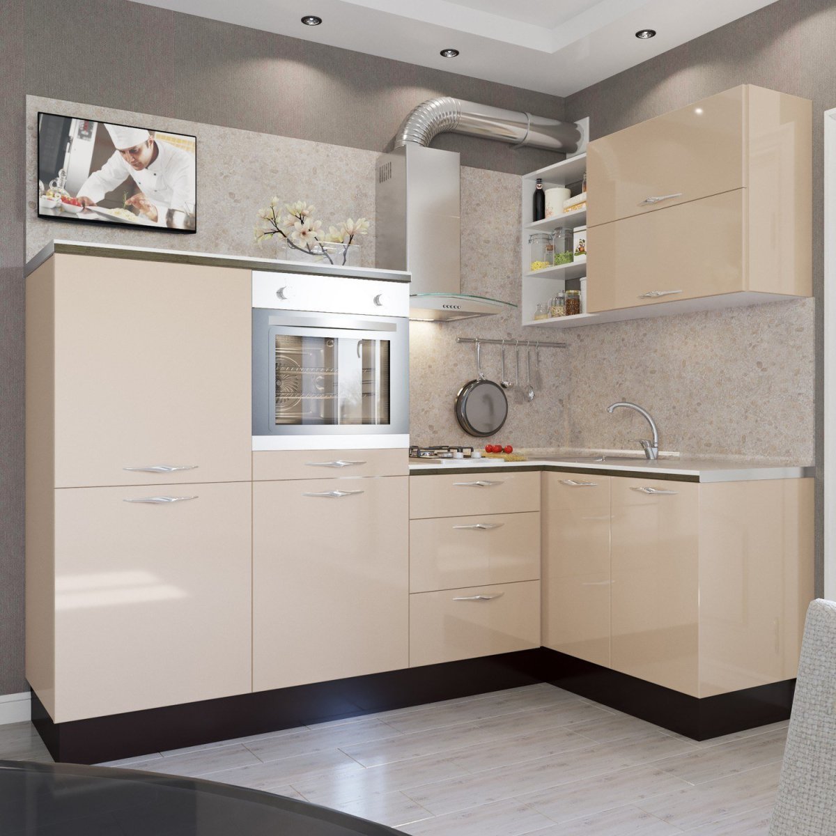 48. Угловая кухня капучино глянец
