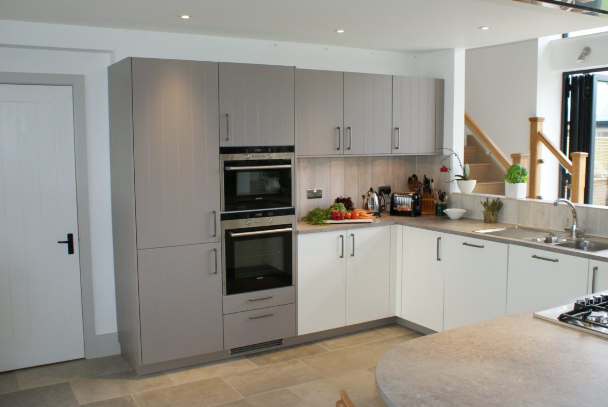 Фото: Кухня белый глянец и серый холодильник