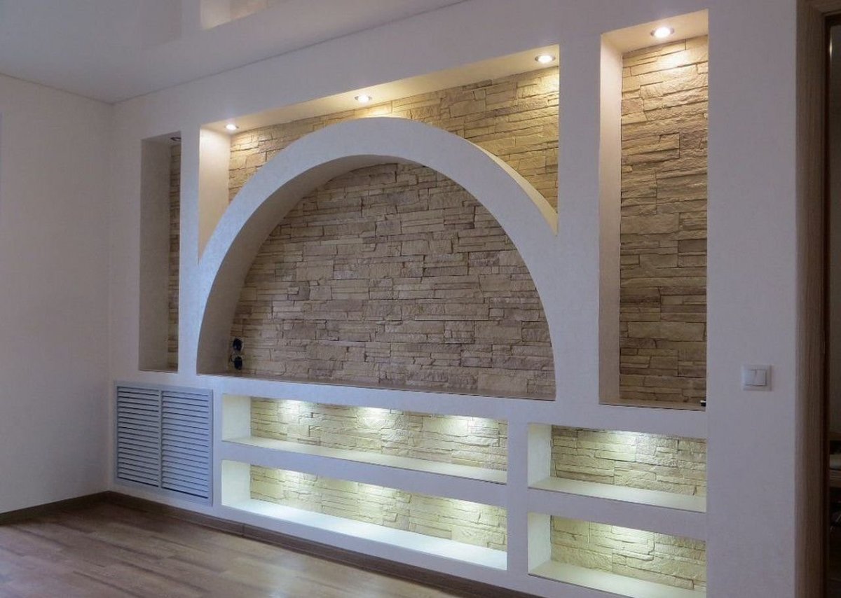 37. Ниши из гипсокартона в гостиной с подсветкой