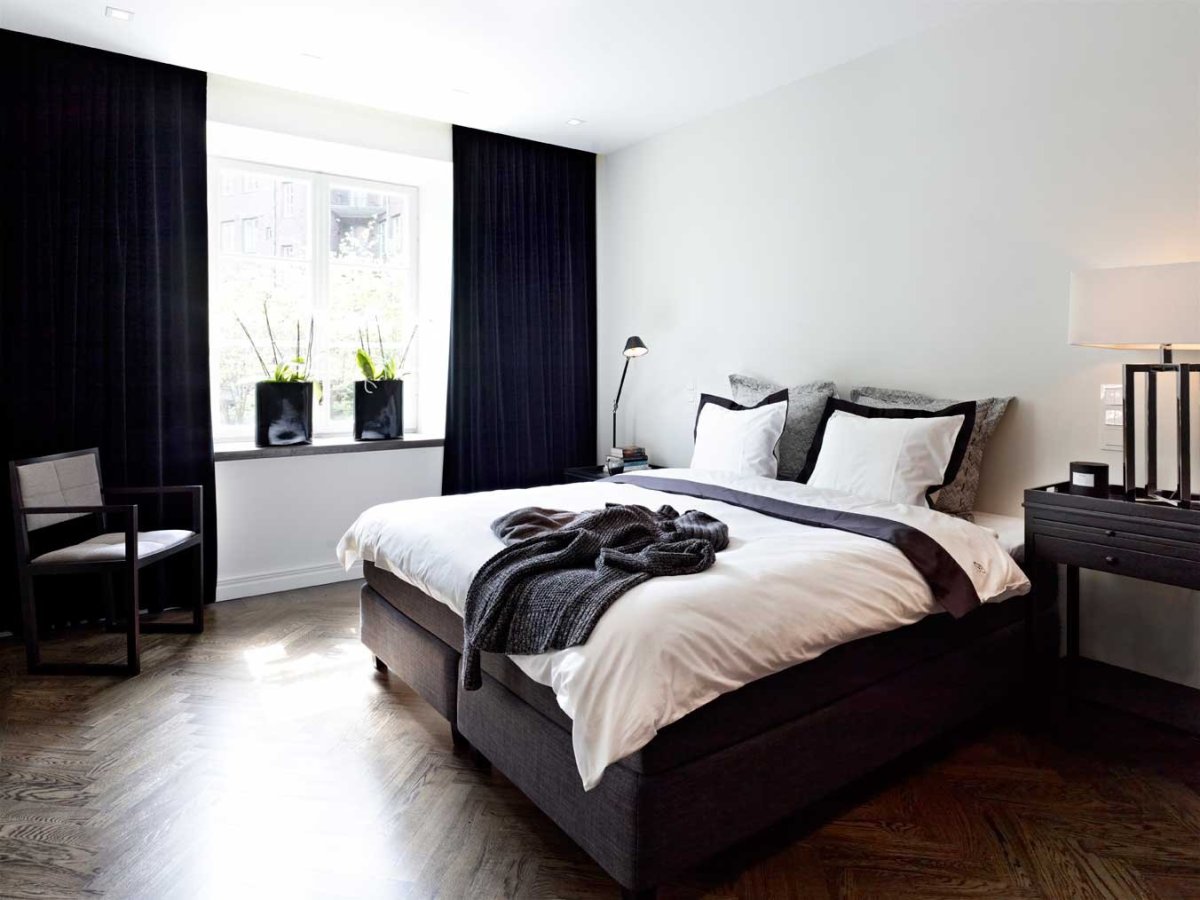26. Интерьер спальни с черной мебелью