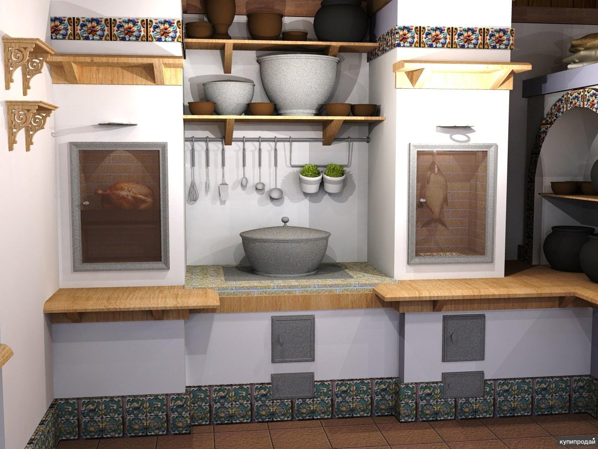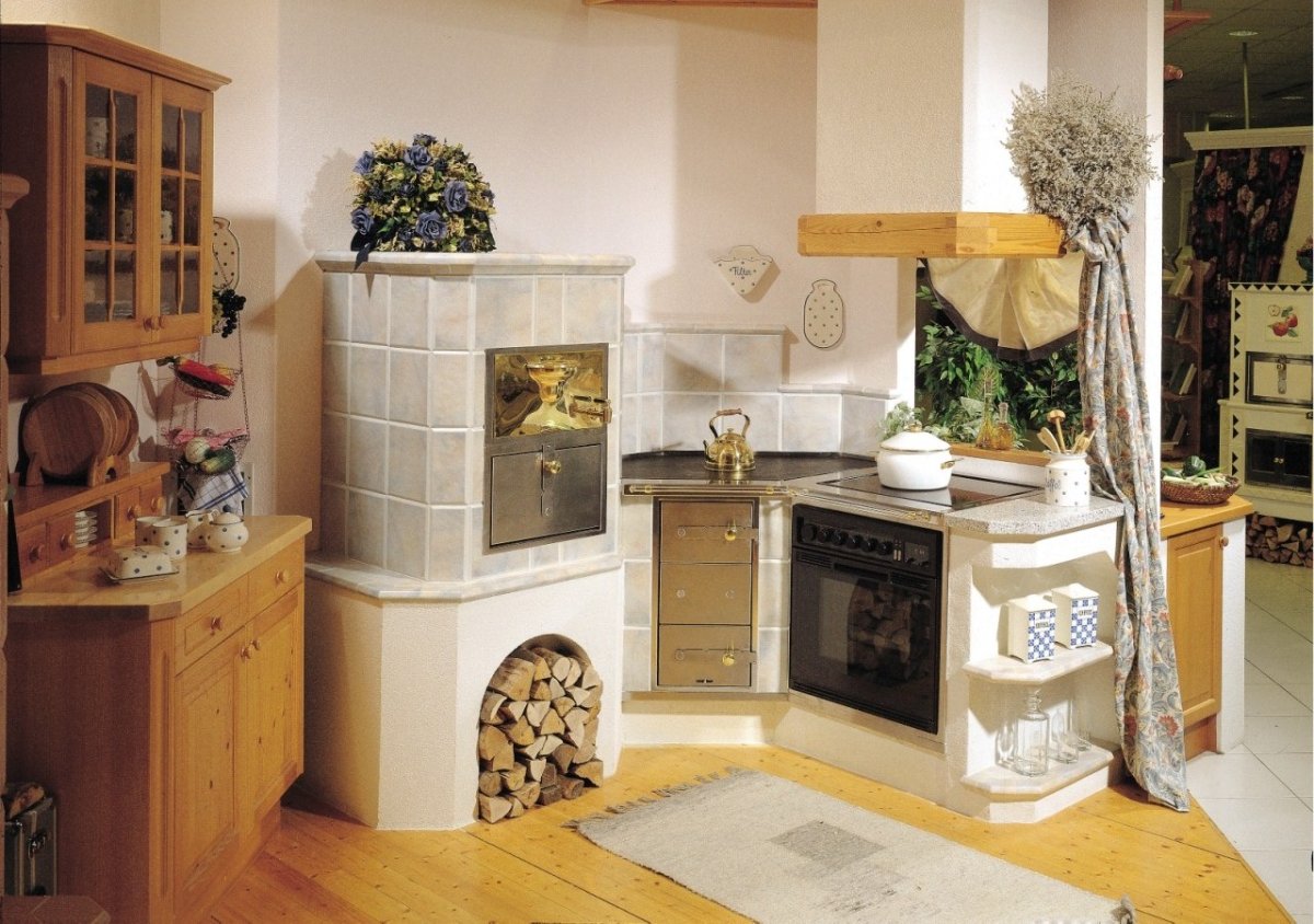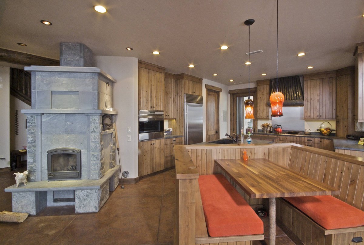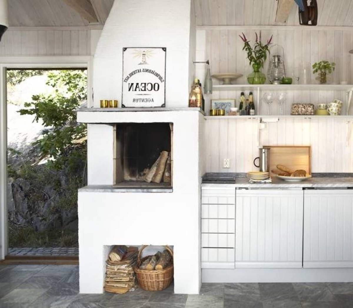 36. Отделка кухни с металлической печкой в частном доме черно белый