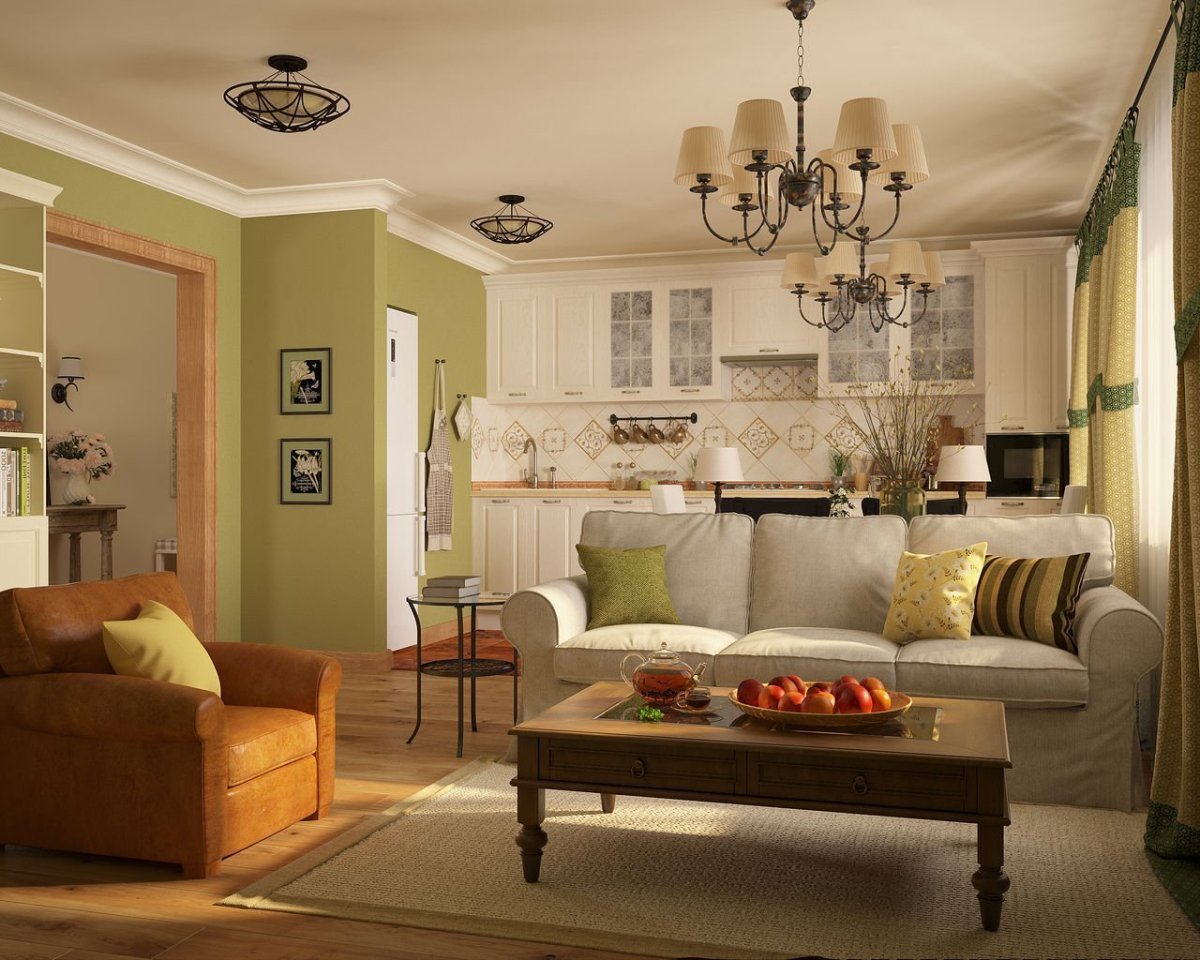 Фото: Гостиная в оливковом цвете