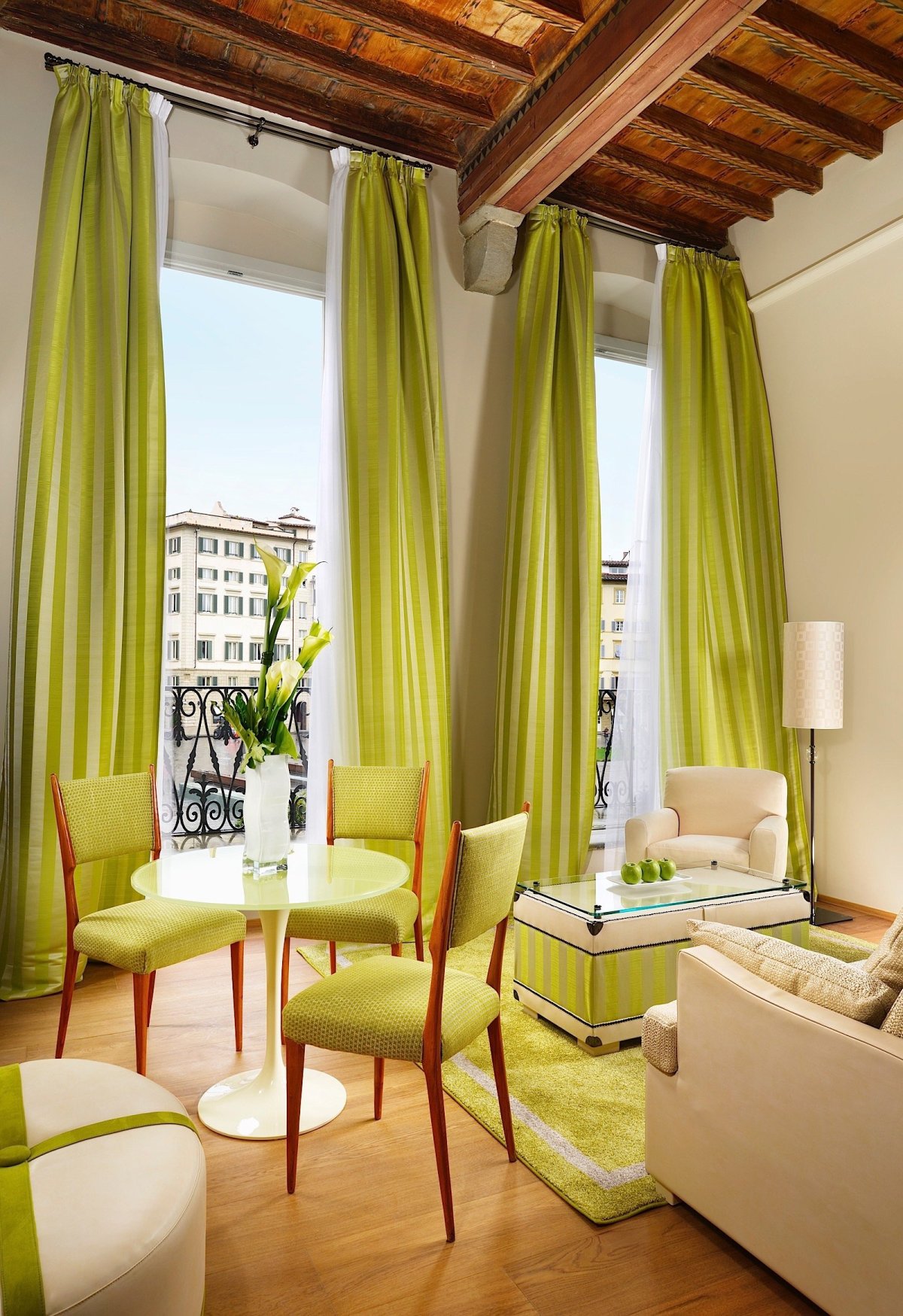 61. Салатовые шторы в интерьере