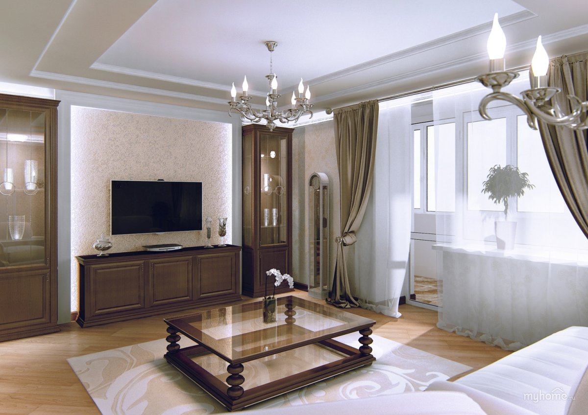 63. Дизайн гостиной Неоклассика теплые тона