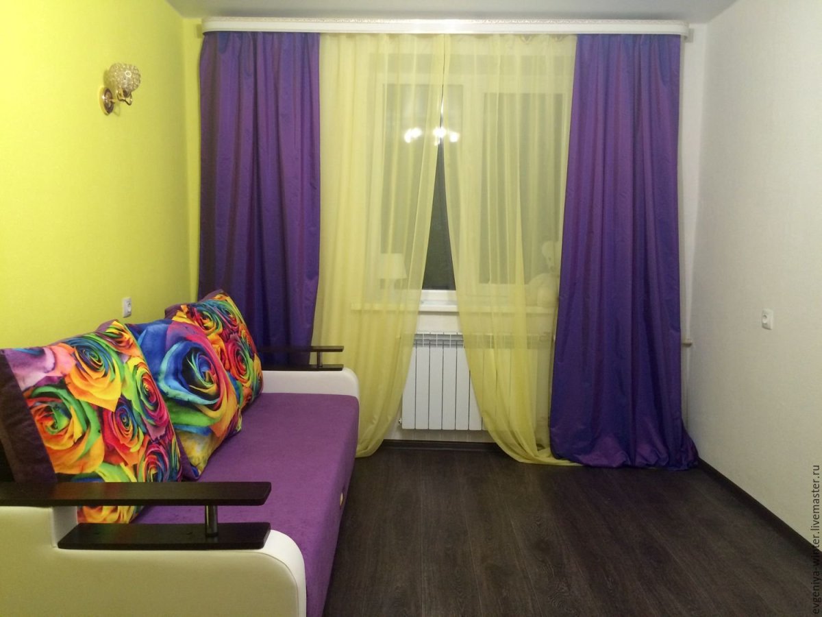 8. Шторы сиреневые с желтым