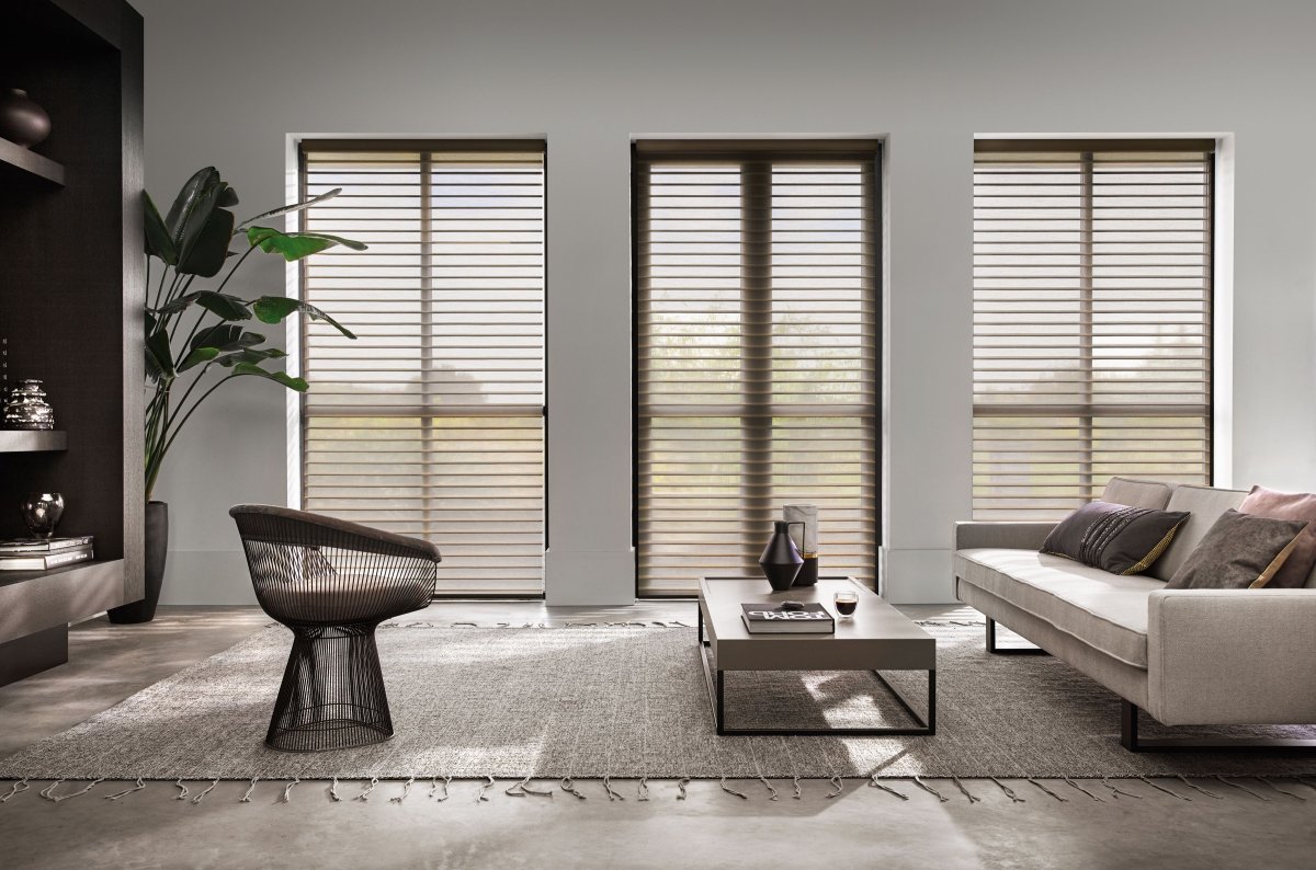 31. Жалюзи горизонтальные деревянные черные в интерьере