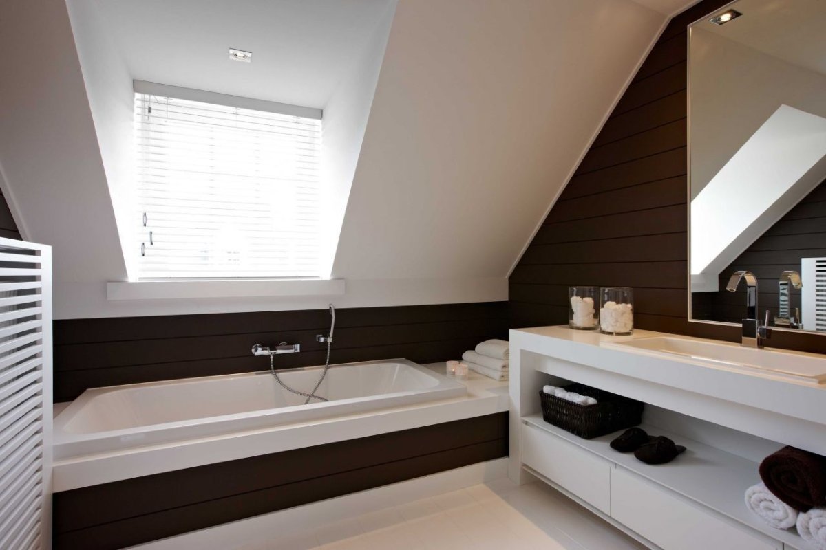 7. Ванная под мансардной крышей