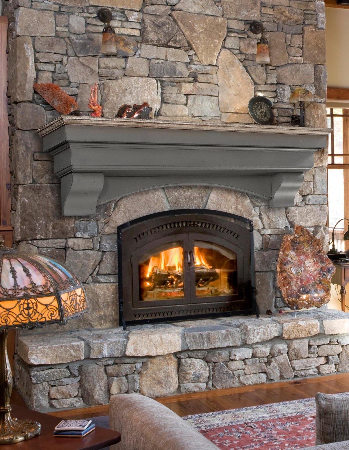 29. Каминная полка из дерева из камня