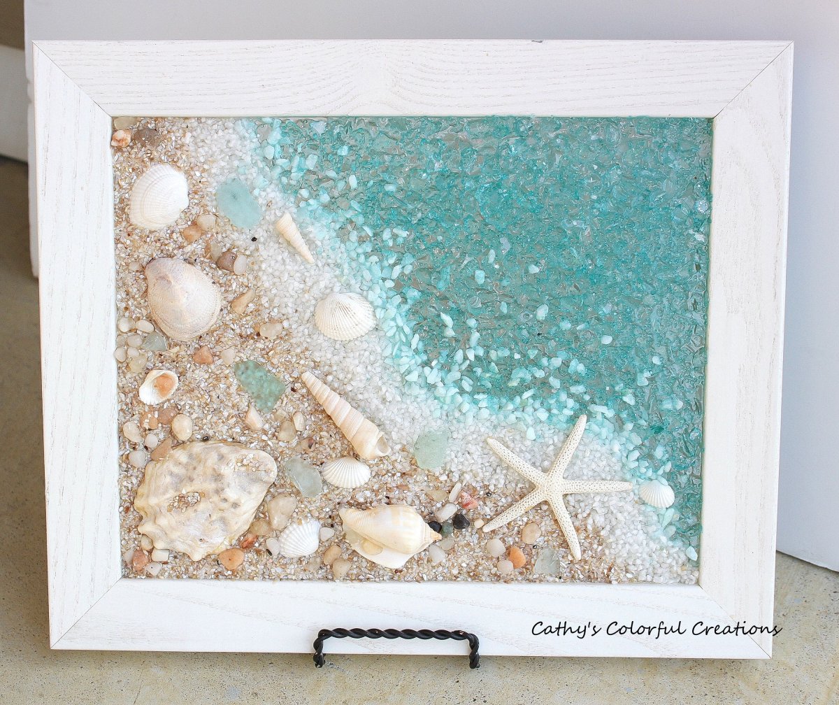 54. Декор из ракушек и стекла на стекле