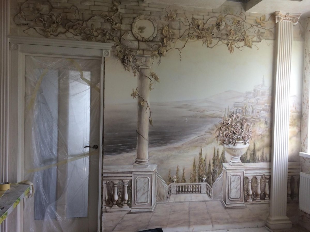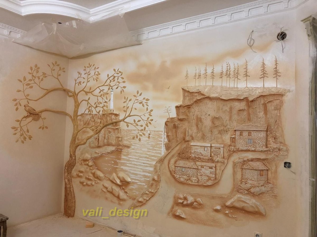 10. Рельефная роспись стен в интерьере
