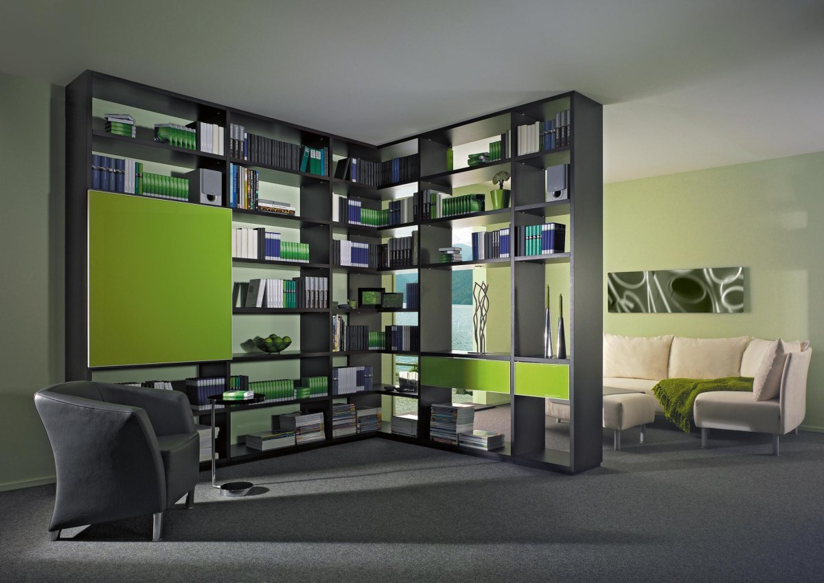 41. Стеллажи перегородки для зонирования пространства в комнате