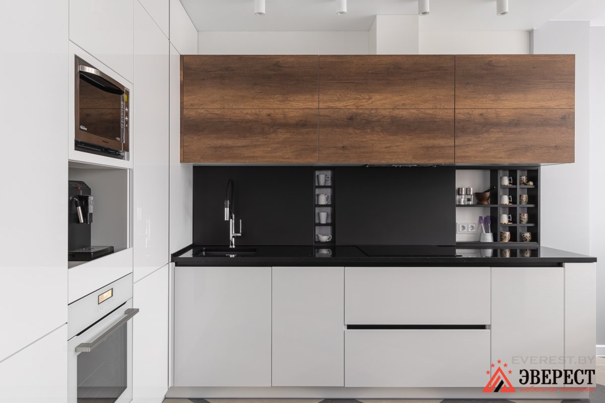 36. Кухня графит с деревом и белым