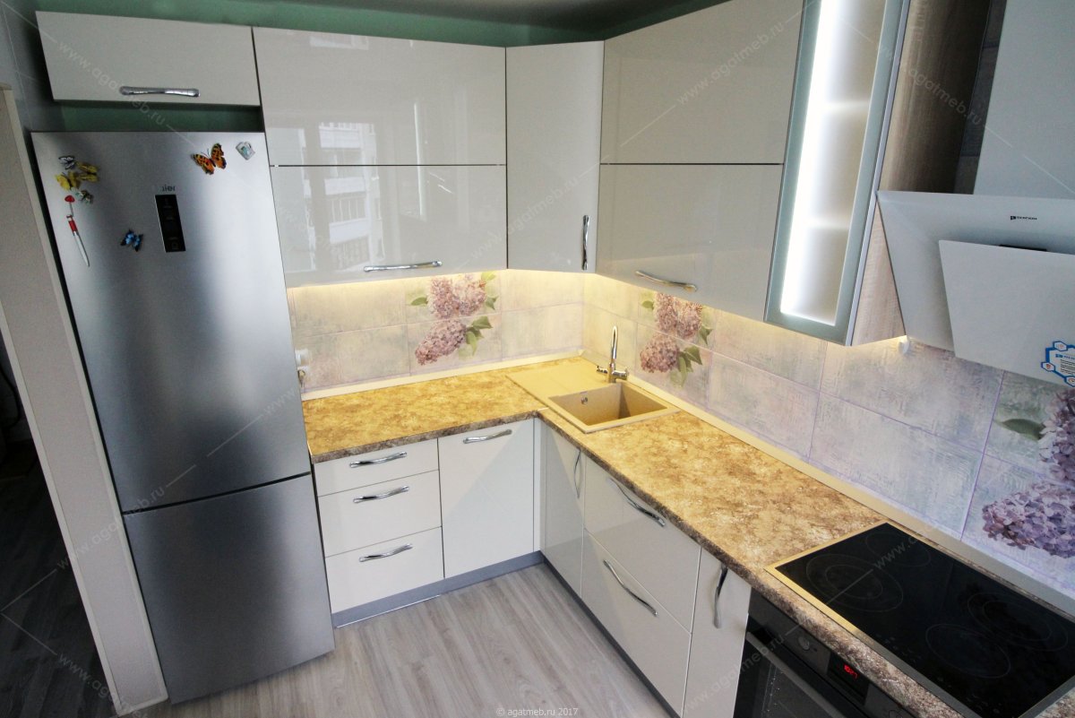 8. Кухня белый глянец со столешницей Королевский опал