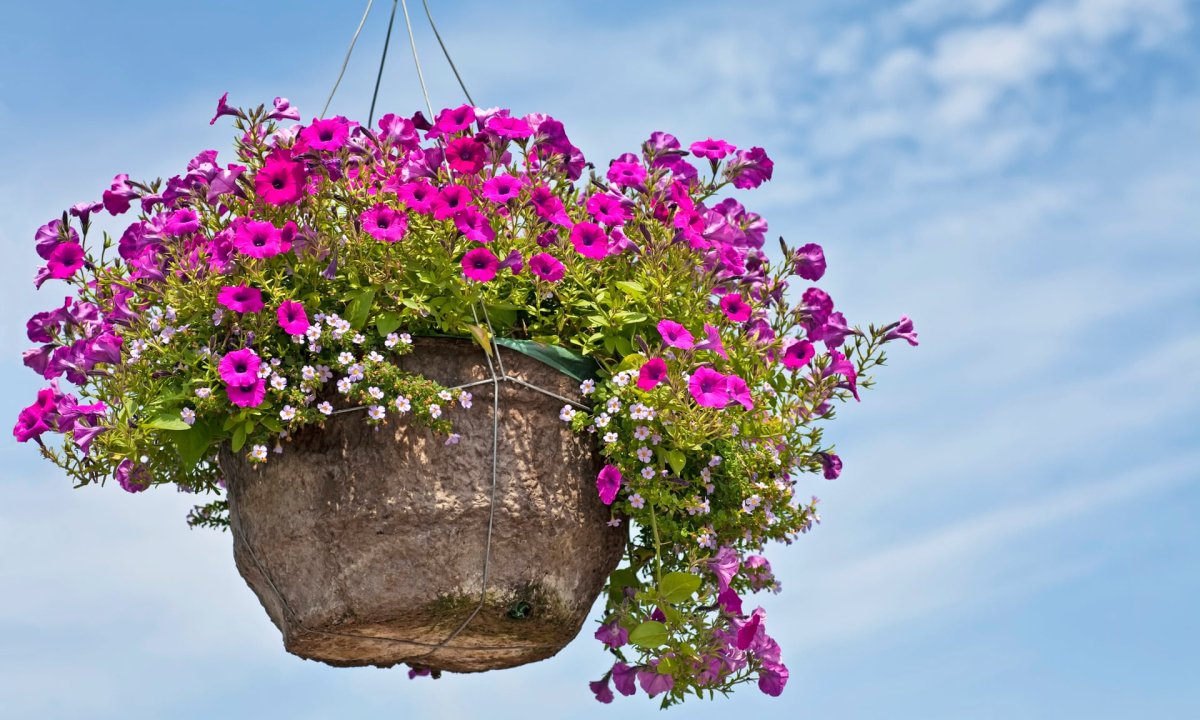 16. Подвесные цветы в горшках уличные
