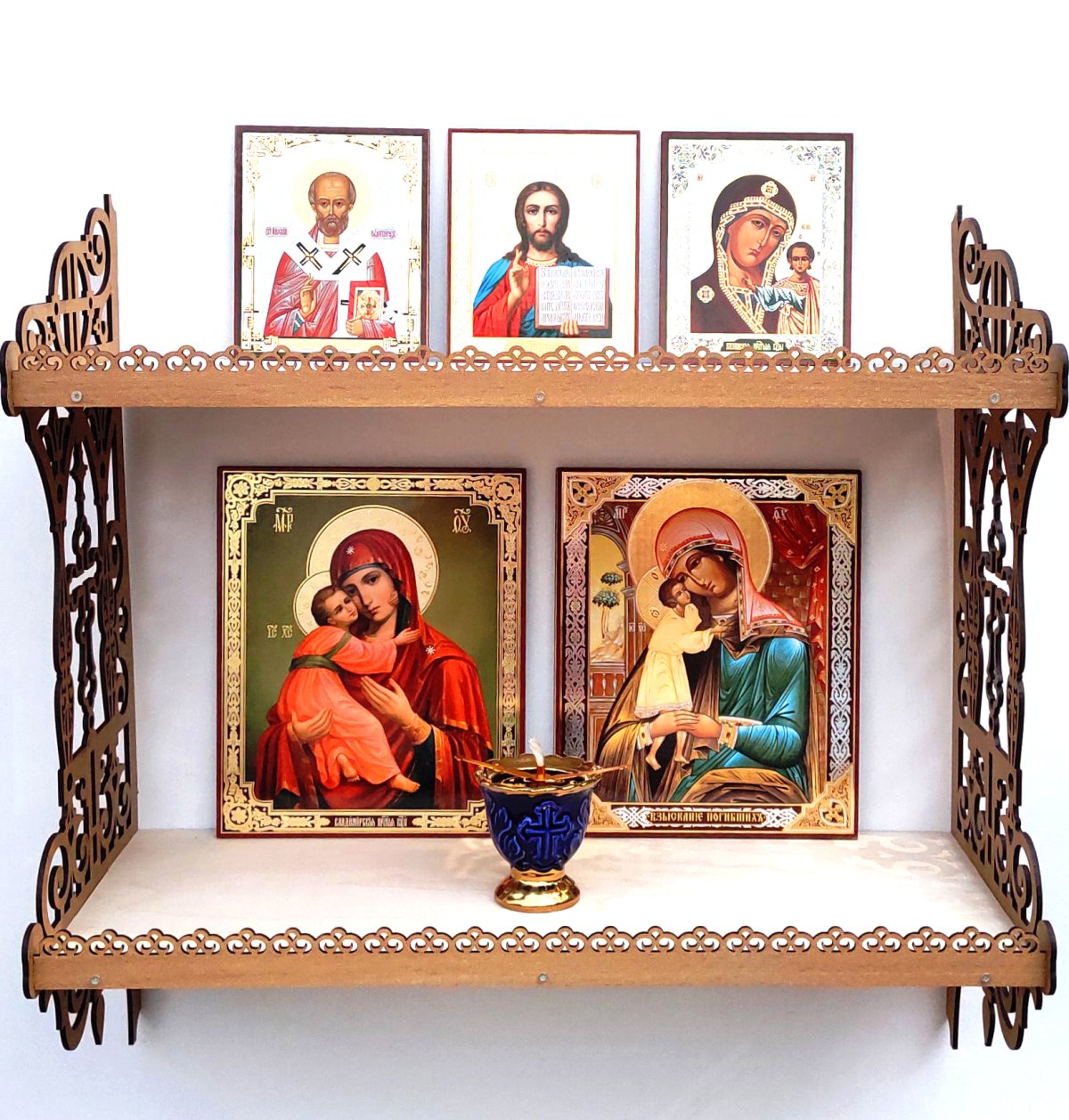 6. Полки для икон двухъярусные цвет дуб