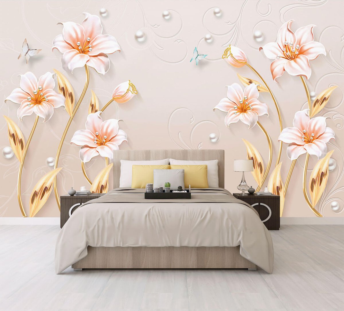61. Фотообои в спальню лилии
