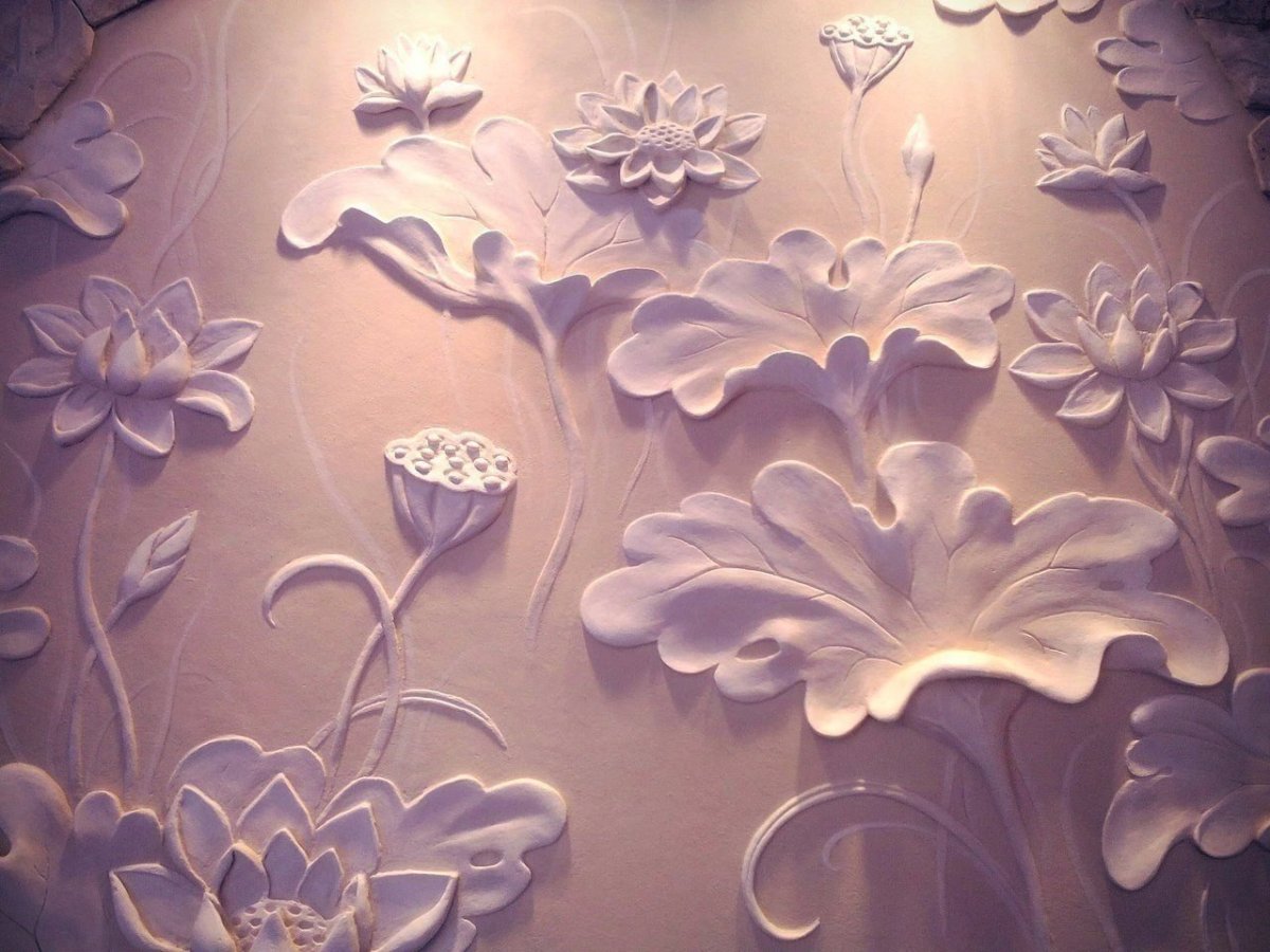 Фото: Барельеф на стену в интерьере цветы