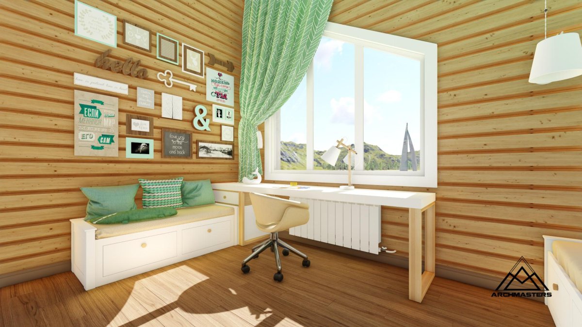 33. Спальня мансарда имитация бруса