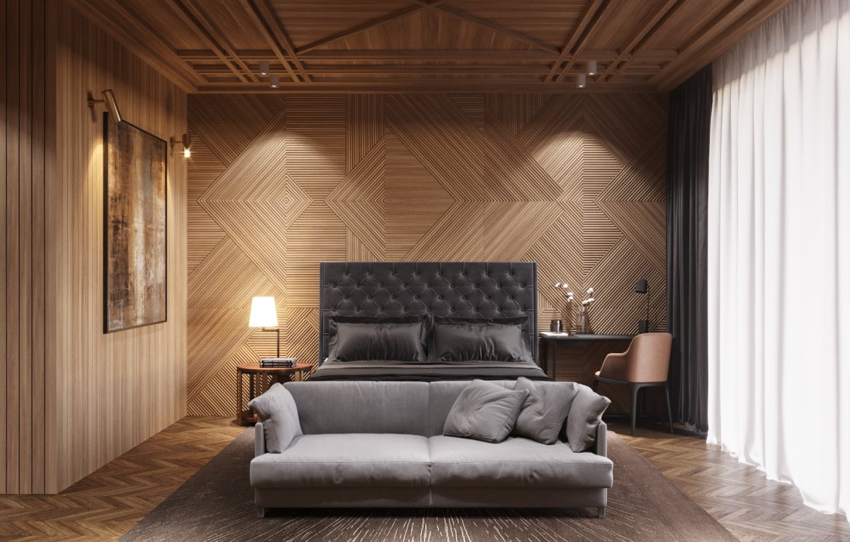 8. Деревянная стена в спальне
