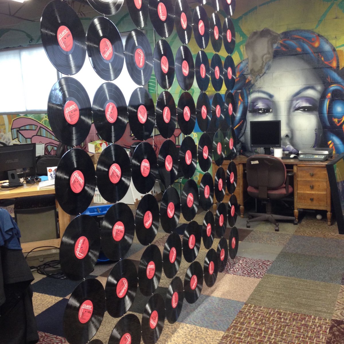 Фото: Виниловые пластинки в интерьере на стене балкона