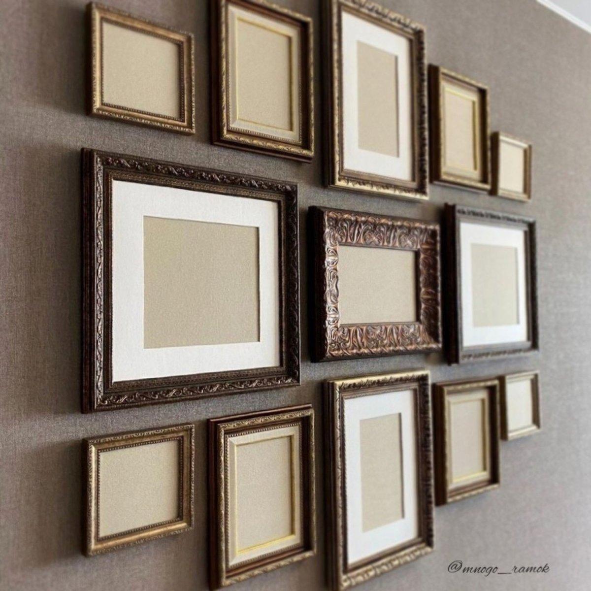 34. Коллаж из рамок для фотографий на стену разных размеров
