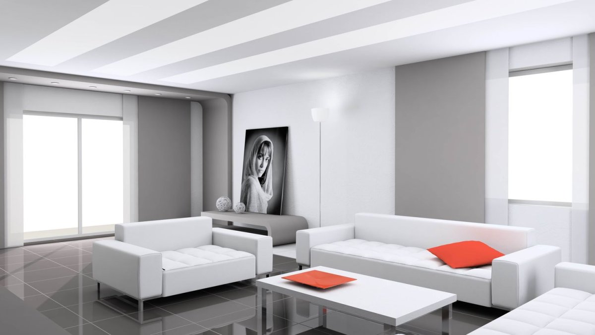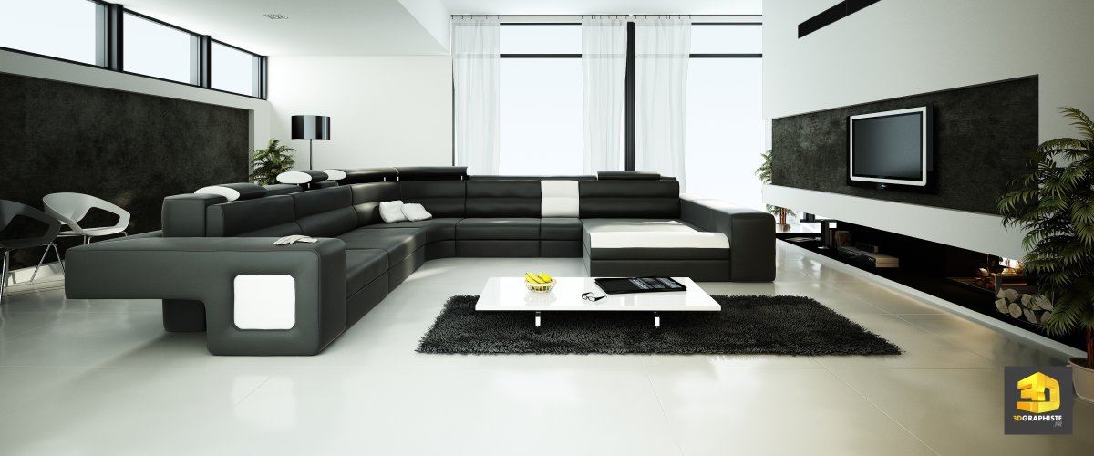 58. Стиле Hi-Tech в интерьере с черно белым диваном