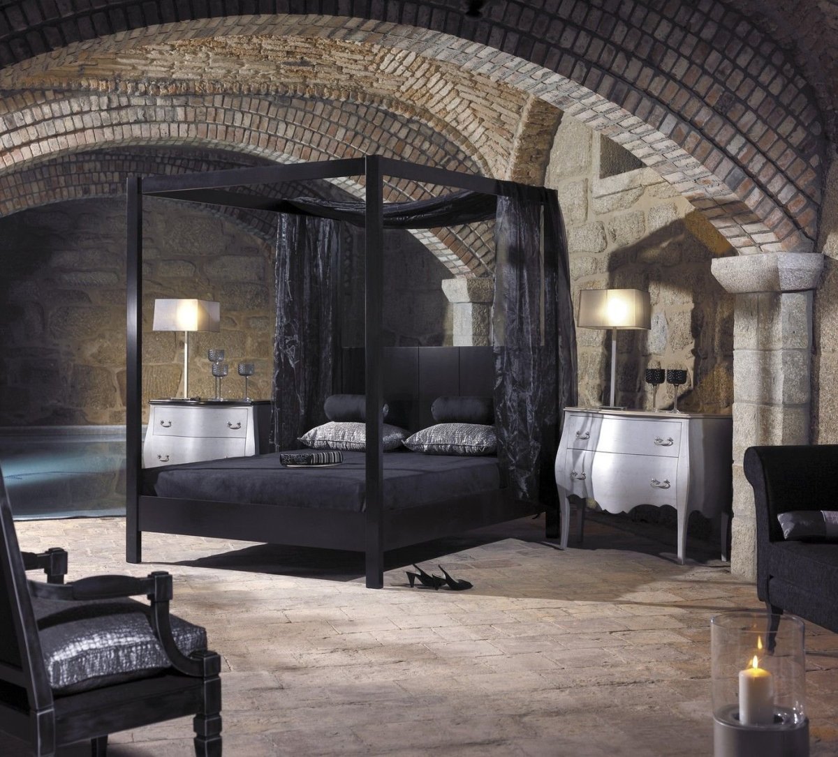 43. Спальня в стиле Минимализм в темных тонах с балдахином