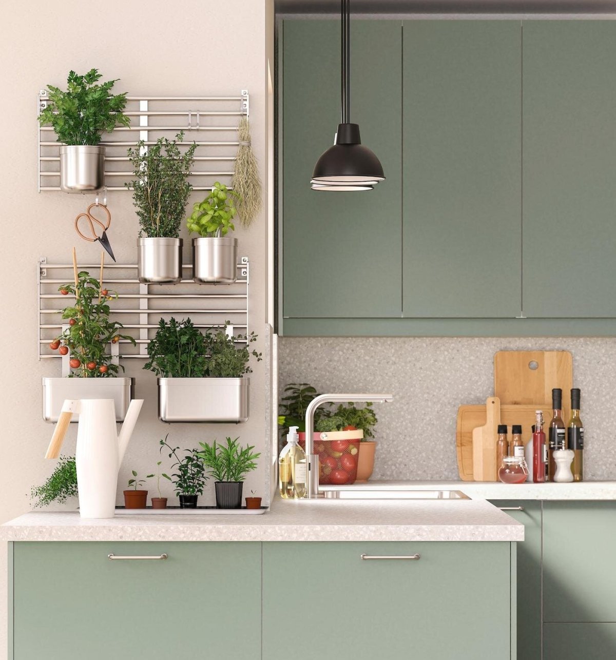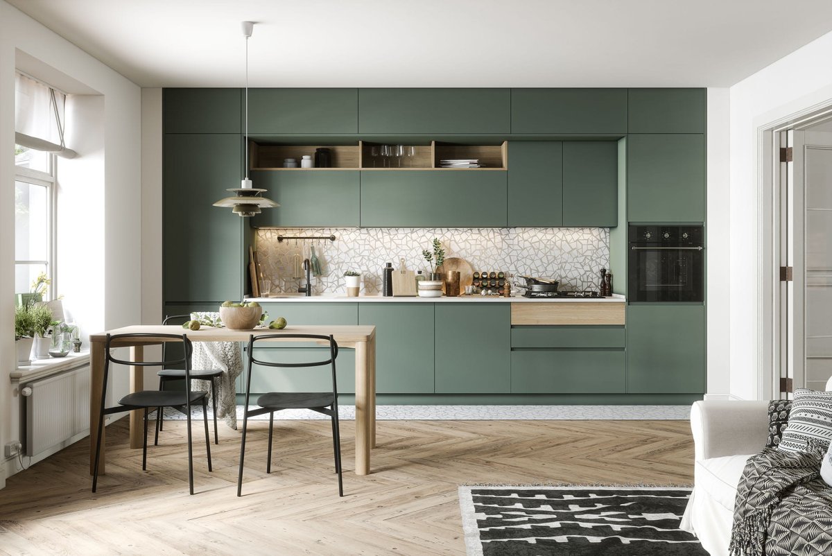14. Зеленая кухня в интерьере в приглушенных тонах
