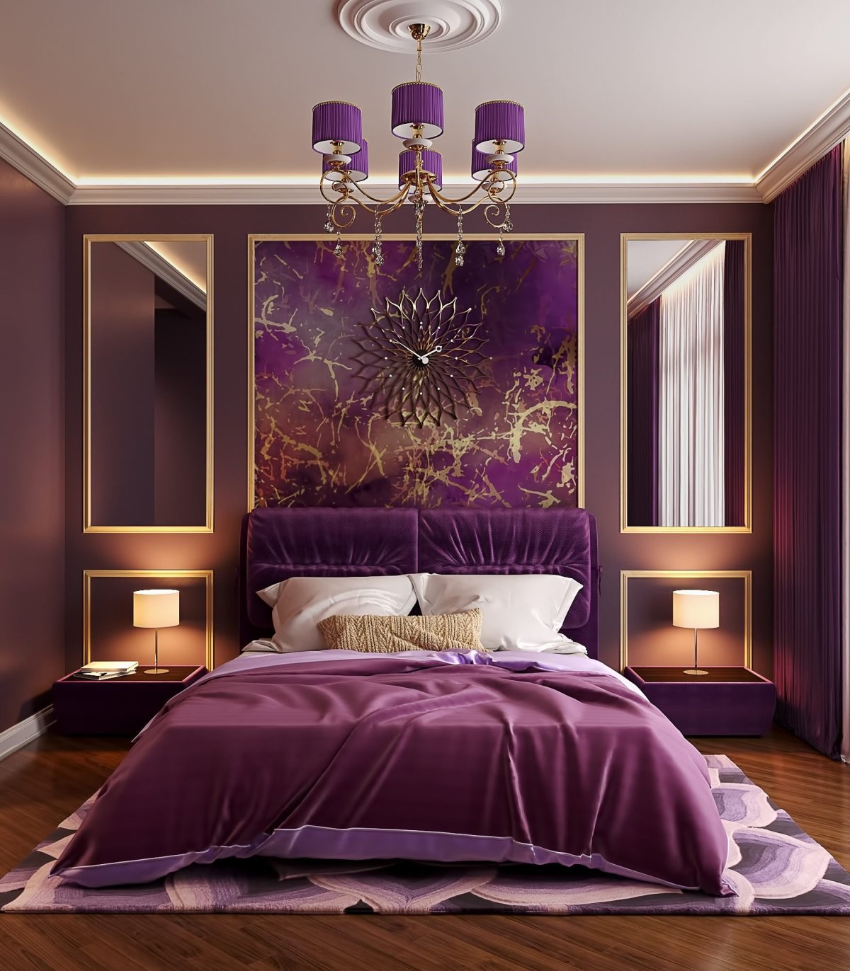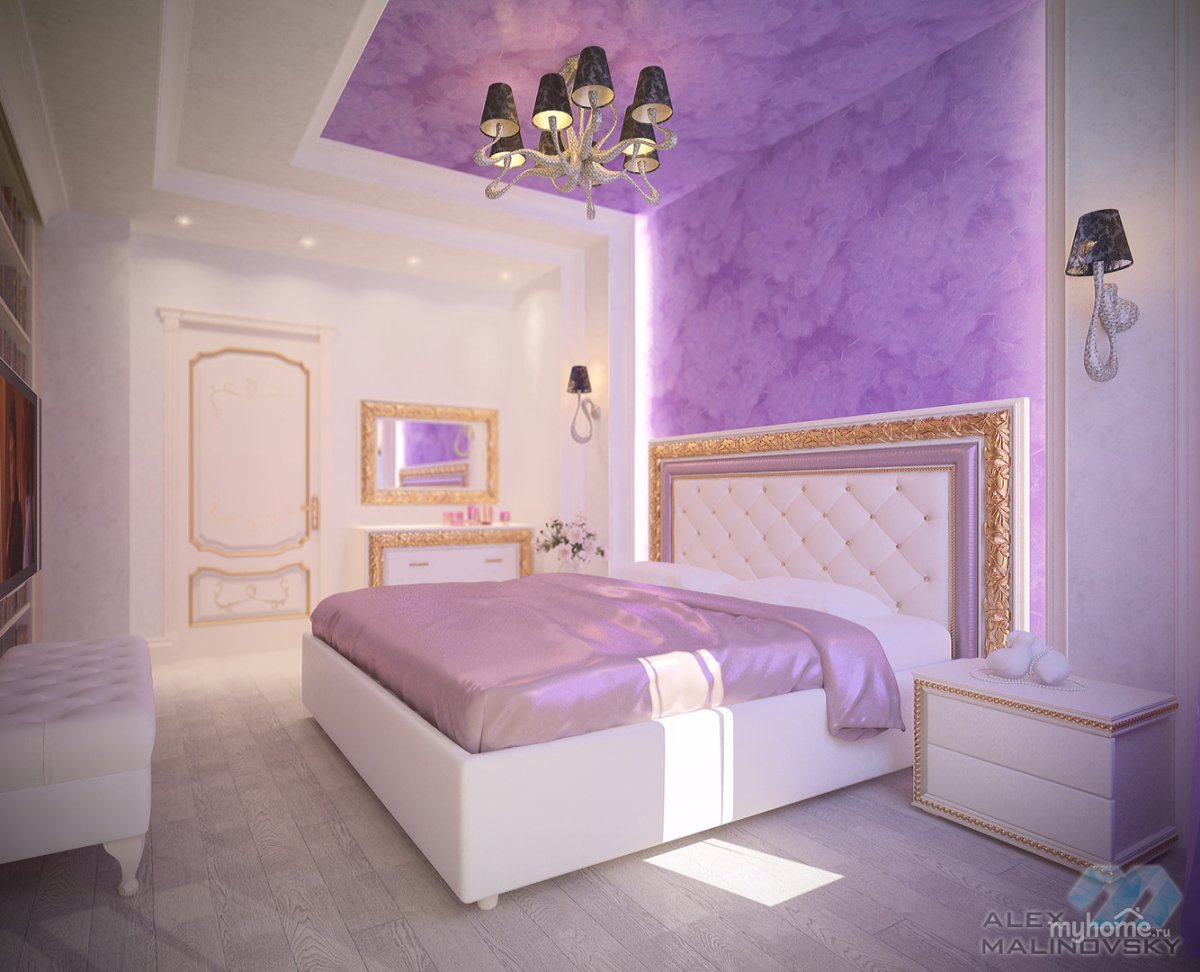 2. Богатые спальни в сиреневом стиле