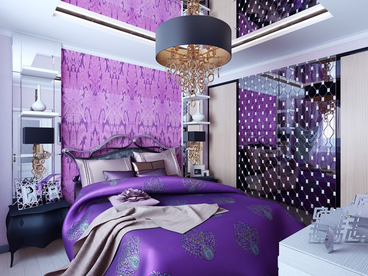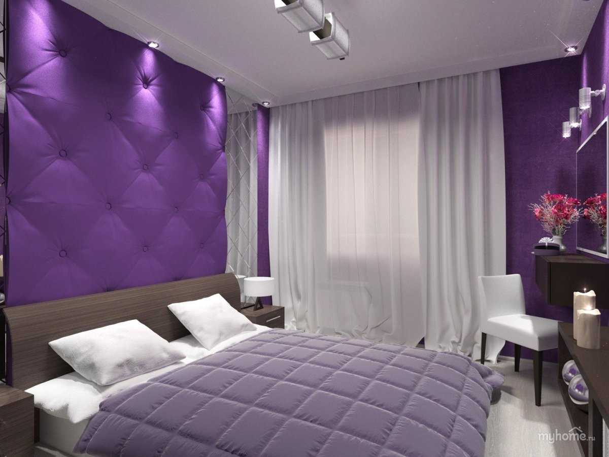Фото: Спальня с фиолетовой кроватью