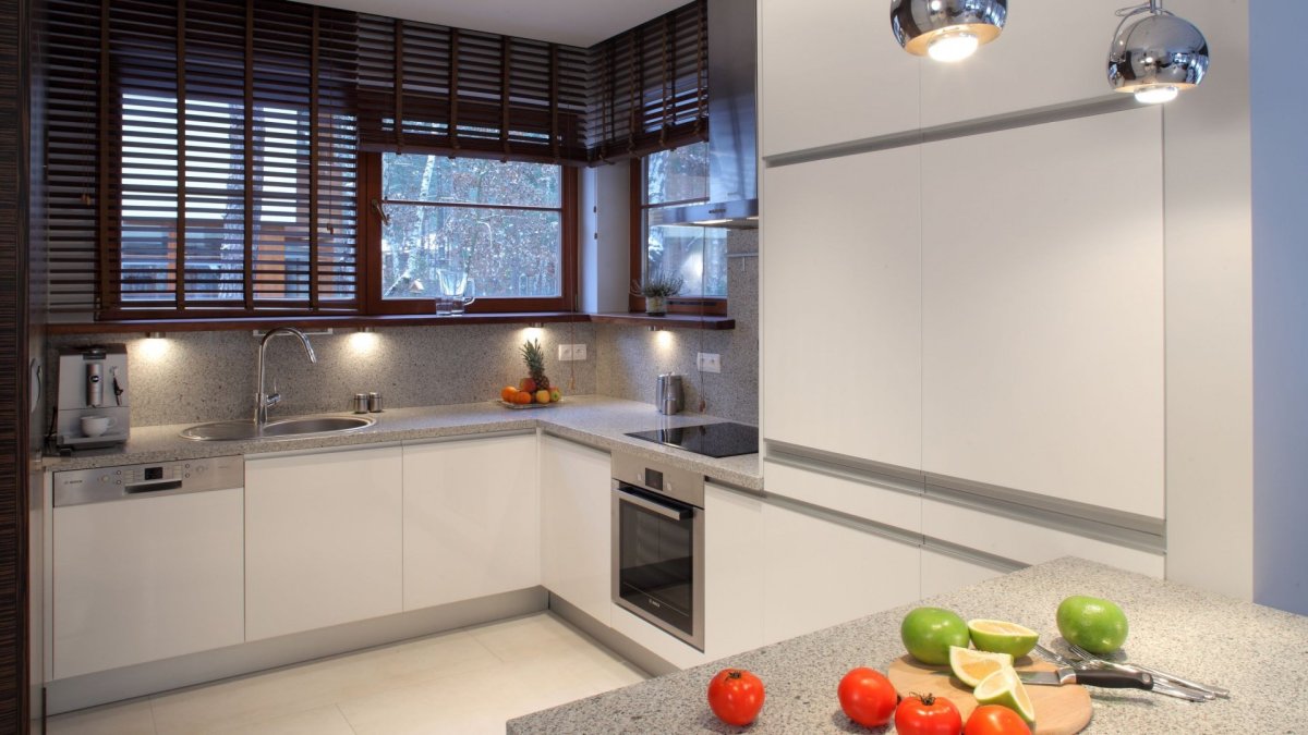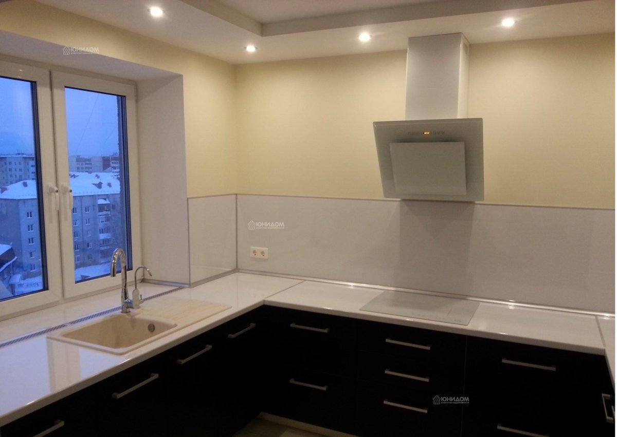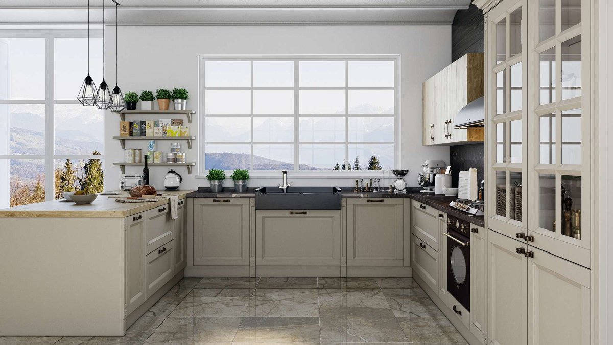 12. Кухонный гарнитур без навесных шкафов для большой кухни с окном
