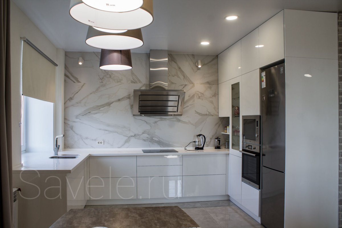 Фото: Кухня икеа Воксторп белая без верхних шкафов
