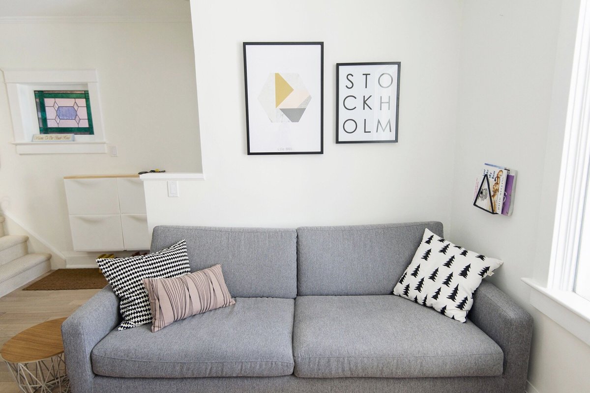 54. Подушки на сером диване в интерьере