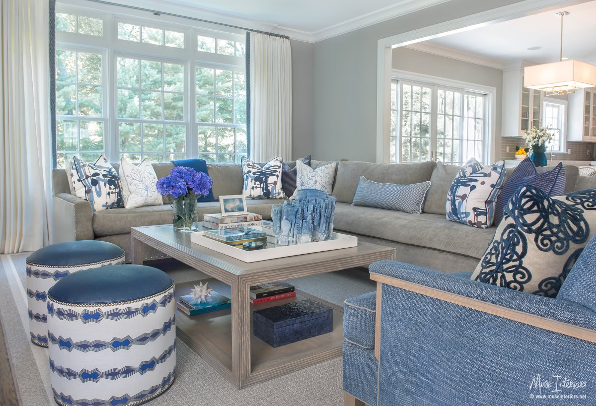 21. Серо голубой диван в гостиной