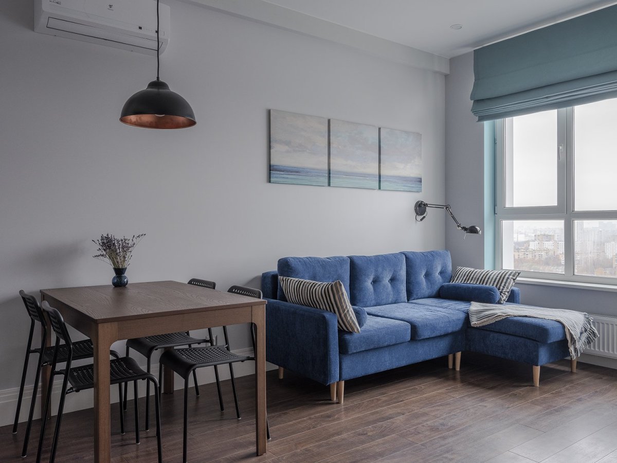2. Синий диван в скандинавском интерьере