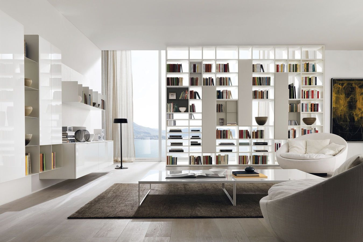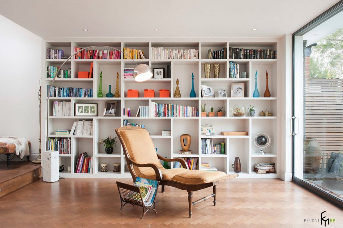 34. Современный книжный шкаф в интерьере