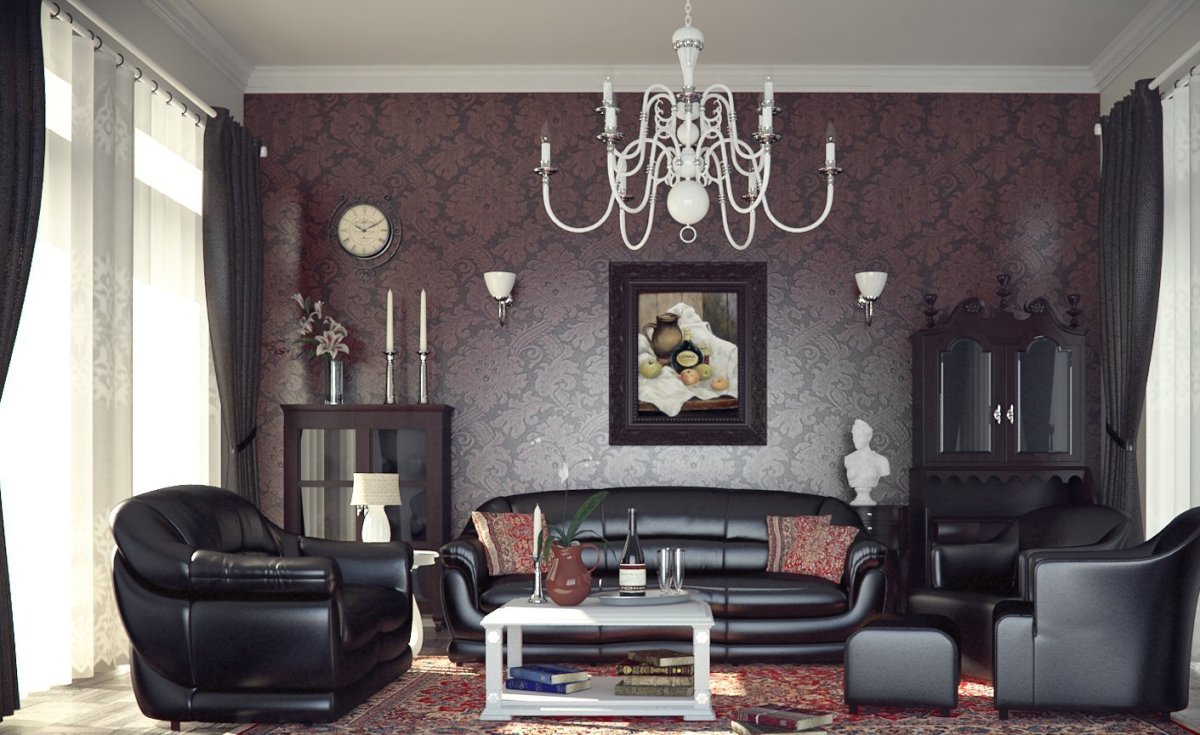 50. Гостиные с темными обоями