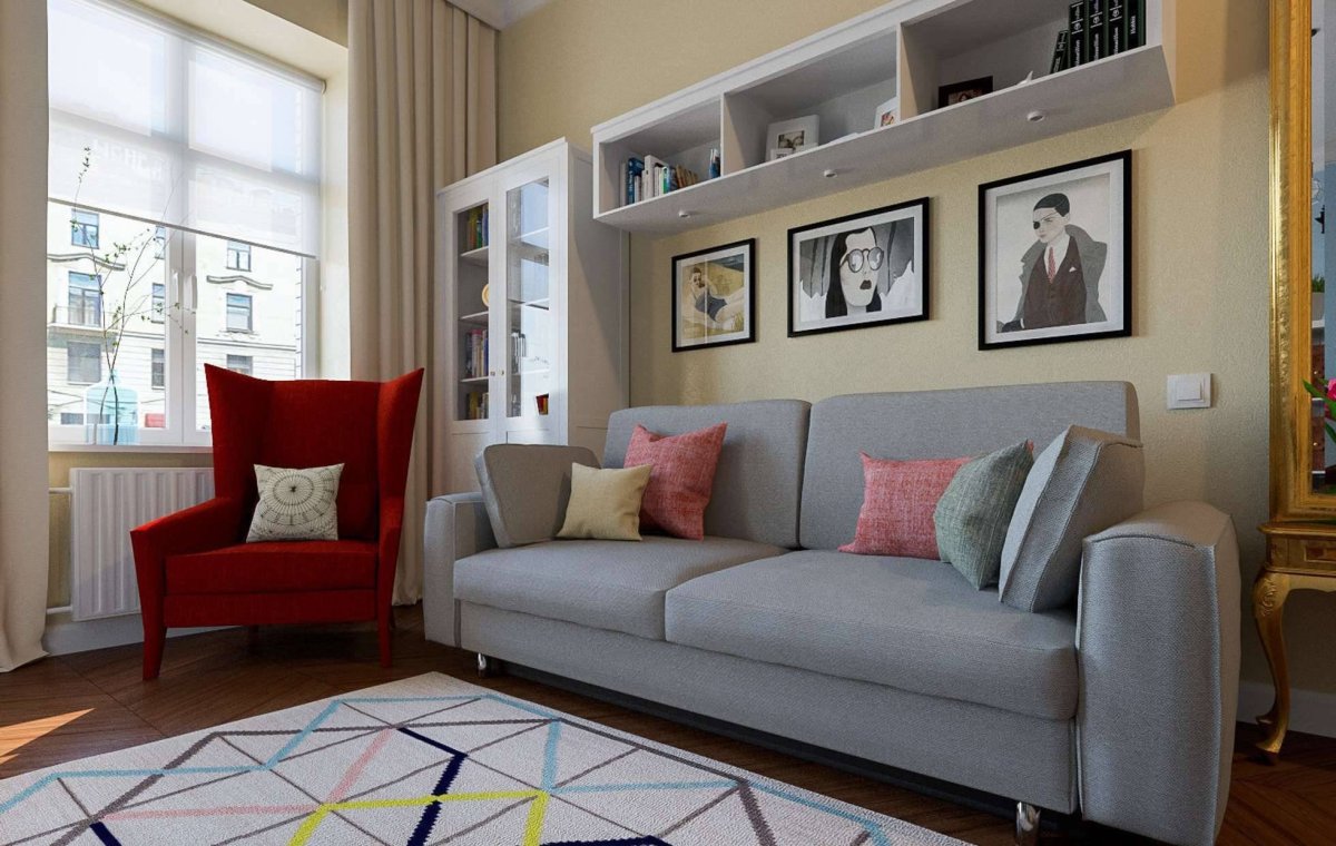 Фото: Комната с диваном и шкафом