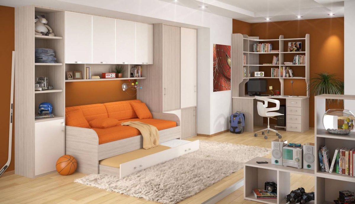 38. Встроенная детская мебель в маленькой комнате