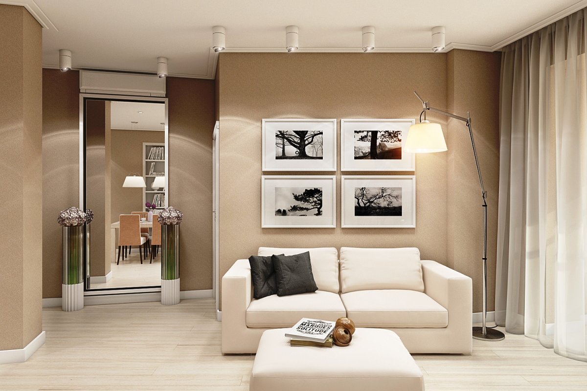 41. Современная гостиная в пастельных тонах