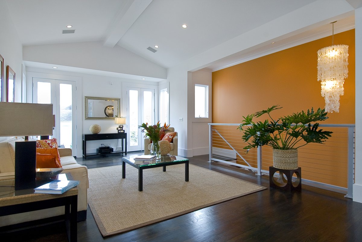 Фото: Оранжевый в интерьере гостиной