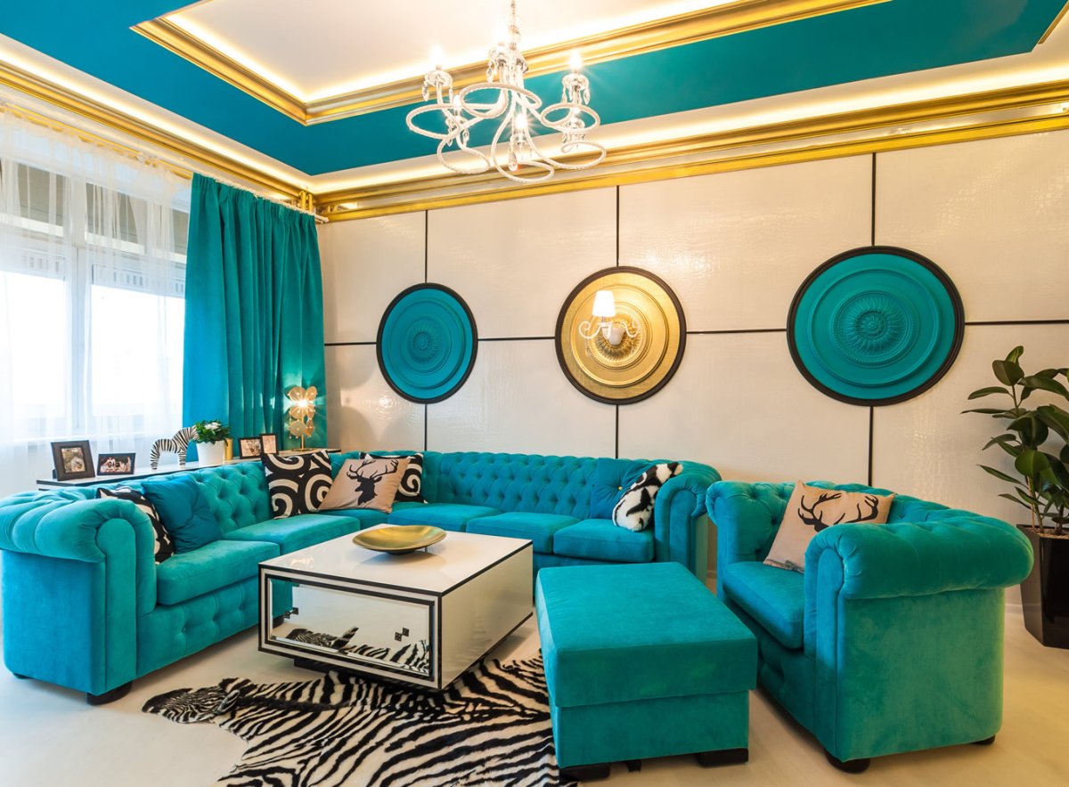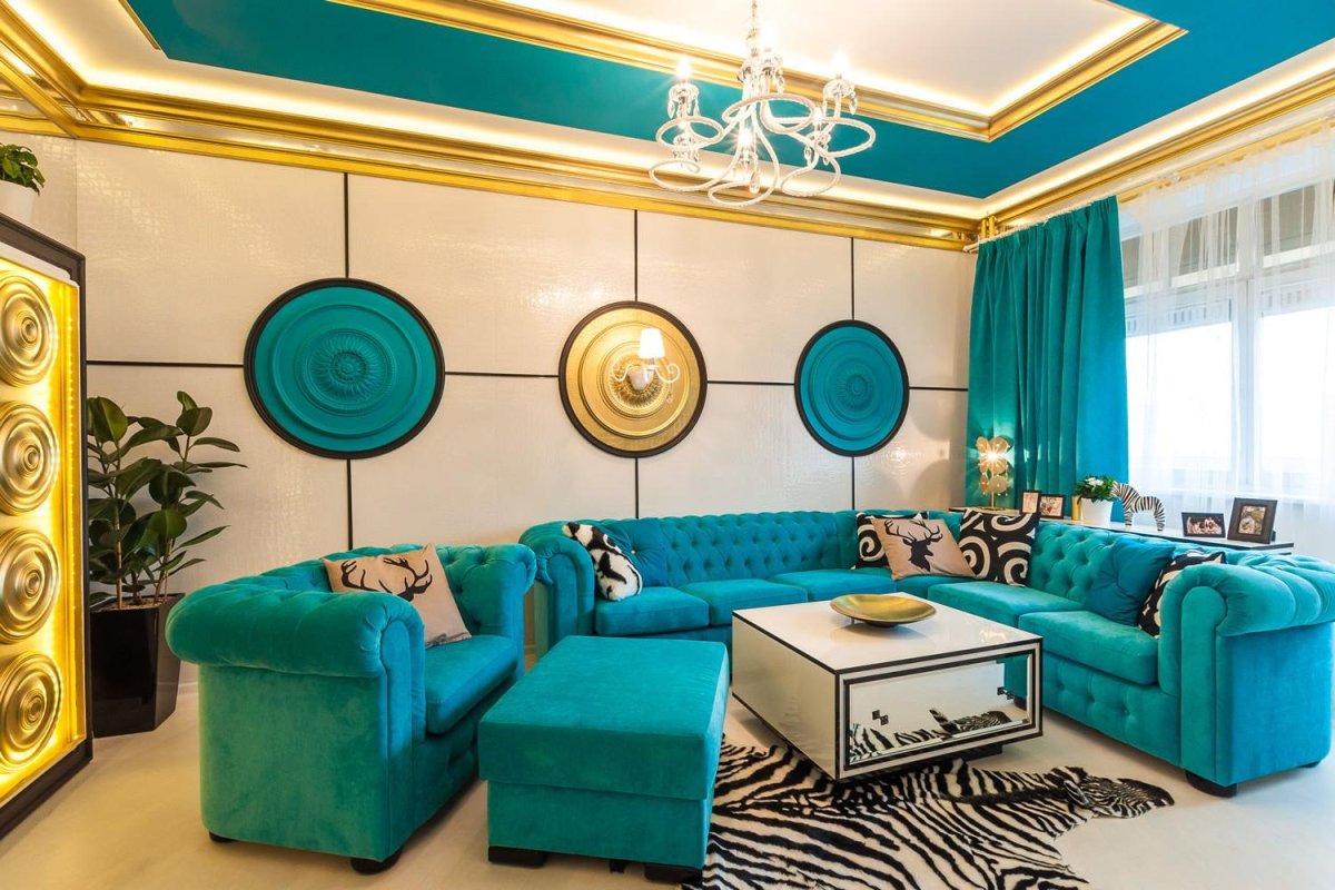 23. Гостиная бирюзовая с золотом