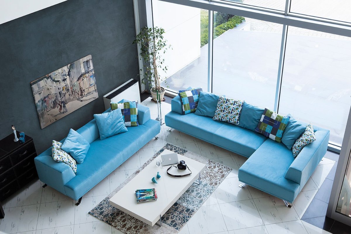 Фото: Голубой диван в интерьере